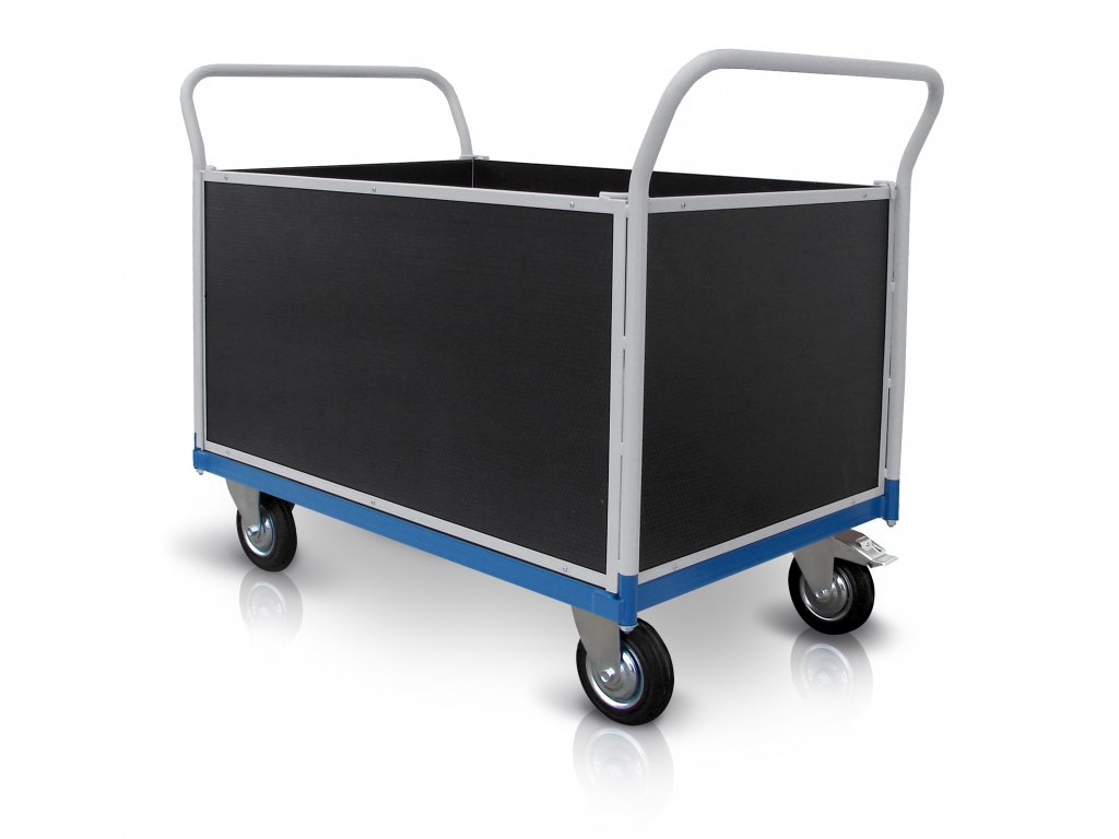 - robuster Plattenwagen mit einem Handlauf mit platten und einer Tragfähigkeit von 500 kg.